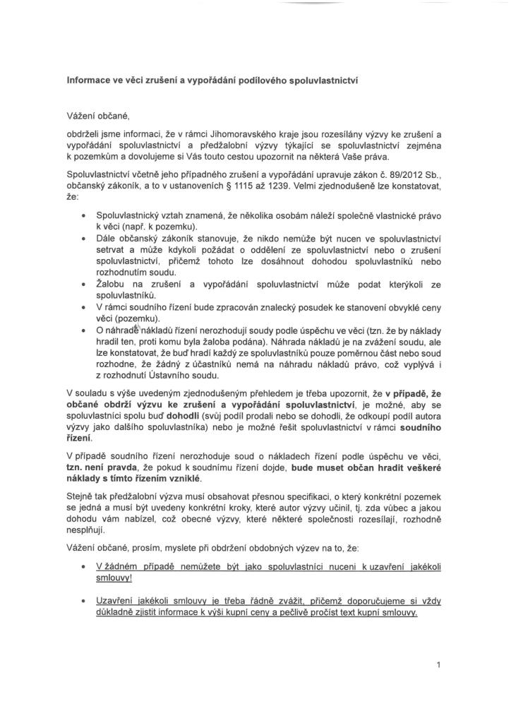 Informace ve věci zrušení a vypořádání podílového spoluvlastnictví 1