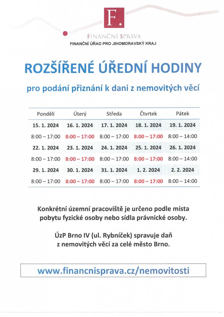 Rozšířené úřední hodiny pro podání přiznání k dani z nemovitých věcí 1