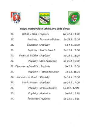Rozpis mistrovských utkání jaro 2026 dorost, muži