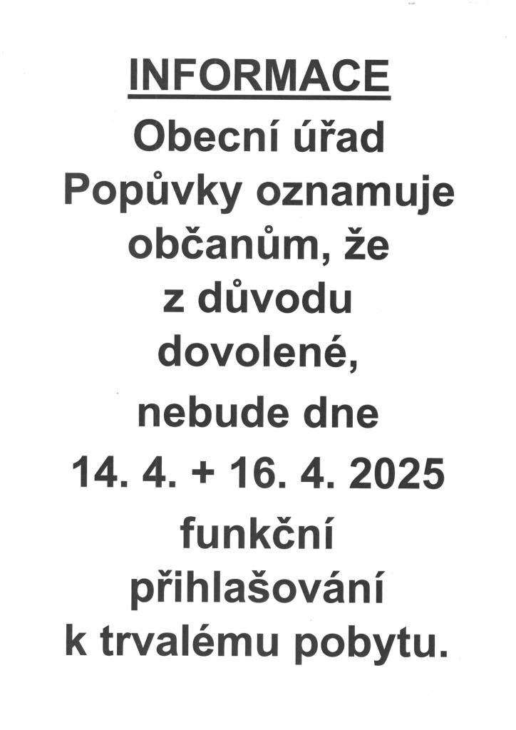 Informace - Změna úředních hodin